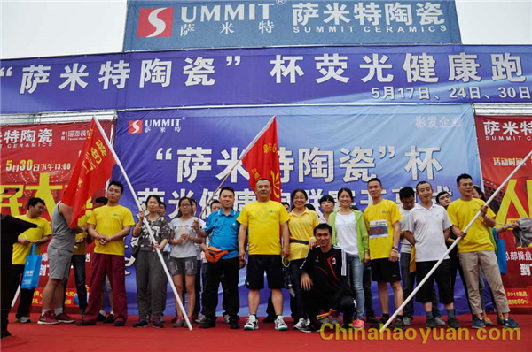 在熒光跑開幕式現(xiàn)場(chǎng),昊源集團(tuán)的參賽隊(duì)伍最為耀眼。兩面昊源大旗迎風(fēng)飄揚(yáng),“奔跑吧,昊源”是我們的口號(hào),“健康生活、快樂運(yùn)動(dòng)”是我們的主題,“綠色化工、美好生活”是我們的品牌形象。
