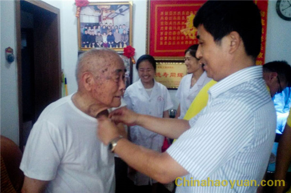 八一建軍節(jié)到來(lái)之際,2016年7月31日上午,昊源集團(tuán)志愿者服務(wù)隊(duì),代表昊源集團(tuán),帶著面、油、白糖、衣服、牛奶等慰問(wèn)品,先后來(lái)到阜城原30軍31師93團(tuán)抗戰(zhàn)老兵陳永法、原國(guó)民革命第八路軍115師5團(tuán)2營(yíng)抗戰(zhàn)老兵楊懷春、原國(guó)民革命第八路軍抗戰(zhàn)老兵王保珍、原國(guó)民革命新編第四軍1師3旅特務(wù)營(yíng)抗戰(zhàn)老兵徐殿明、原豫皖蘇軍區(qū)4師抗戰(zhàn)老兵趙元貞五位前輩的家中,向他們表示慰問(wèn)。其中趙元貞老前輩在原阜陽(yáng)縣政府工作時(shí),就分管昊源集團(tuán)(原化肥廠),對(duì)昊源集團(tuán)最近的發(fā)展情況,非常關(guān)心。