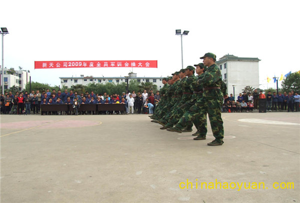 經(jīng)過(guò)一個(gè)月的軍訓(xùn), 4月30日,公司舉行了全員軍訓(xùn)會(huì)操大會(huì)。此次軍訓(xùn)使職工隊(duì)伍更加整齊,訓(xùn)練更加有素,作風(fēng)更加優(yōu)良。充分體現(xiàn)了和昊源合作后,職工飽滿的工作熱情。將有力促進(jìn)企業(yè)快速健康發(fā)展。 (新天公司工會(huì))