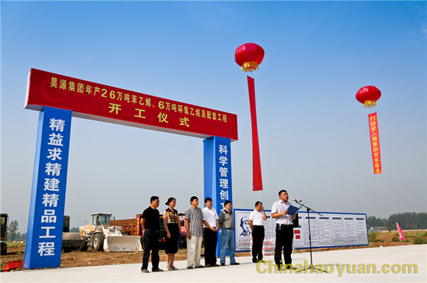 高明林在開(kāi)工儀式上講話(huà)。他代表昊源集團(tuán)感謝阜陽(yáng)市委、市政府及潁東區(qū)委、區(qū)政府對(duì)年產(chǎn)26萬(wàn)噸苯乙烯和6萬(wàn)噸環(huán)氧乙烷及配套項(xiàng)目的大力支持,從而保證了項(xiàng)目的快速推進(jìn)和及時(shí)開(kāi)工。