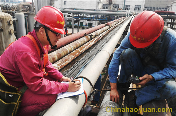 對(duì)檢查發(fā)現(xiàn)的隱患詳細(xì)記錄,并反饋給所在車間及時(shí)整改,杜絕隱患的存在。另外,對(duì)照管線圖,對(duì)管壁厚度進(jìn)行測(cè)量、記錄,全面掌握管道壁厚變化情況。