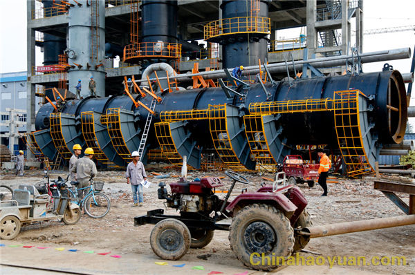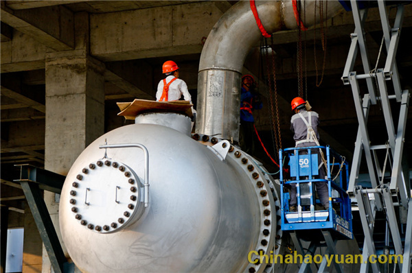 在設備安裝方面,項目配套的空分工段冷箱內設備安裝、配管已全部結束,9月份進行試壓。室外設備也已全部就位,正在進行室外設備的配管。空壓機、增壓機、汽輪機等室內設備正在進行安裝;鍋爐工段兩臺每小時260噸蒸汽的單體鍋爐已全部安裝結束,水壓試驗已完成,正在進行筑爐施工。鍋爐配套的電袋除塵、煙氣脫硫、煙囪、灰?guī)斓日谶M行施工,配管工作正有序推進,電氣、儀表安裝已全面展開;氣化工段配套的靜止設備、運轉設備已全部到場就位,安裝單位正在進行管道預制工作,鋼結構封頂預計9月20號左右,屆時將全面垂直上下分開,進行整體施工推進;凈化工段變換崗位設備已到貨完畢,并就位90%,正在進行管道的預制工作;低溫甲醇洗工段主要設備全部就位,正在進行配管預制。其它工段的設備也在陸續(xù)到貨、安裝中,現(xiàn)場一派忙碌景象。