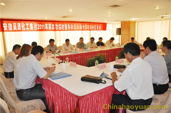 7月19日上午,昊源集團(tuán)公司2011年臨時(shí)股東會(huì)暨三屆董事會(huì)第十四次臨時(shí)會(huì)議在阜陽市國(guó)際大酒店隆重召開。出席此次會(huì)議的有晉煤集團(tuán)巡視辦巡視二組組長(zhǎng)王建國(guó)等領(lǐng)導(dǎo),參加會(huì)議的有,昊源集團(tuán)公司股東和股東代表、公司董事、監(jiān)事。會(huì)議由公司董事長(zhǎng)鄭高潮先生主持。