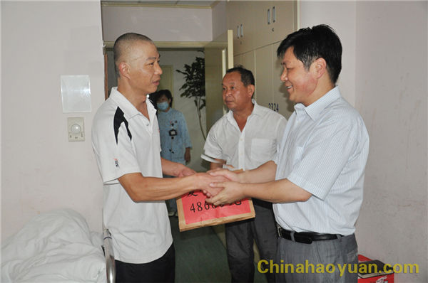 8月17日,公司副總經(jīng)理高玉磊攜工會(huì)副主席滑海東、李文平一行,帶著公司和全體員工的重托與祝愿,攜著沉甸甸的愛(ài),不遠(yuǎn)千里趕赴上海腫瘤醫(yī)院,及時(shí)的將愛(ài)心捐款送到翟金良的手中。