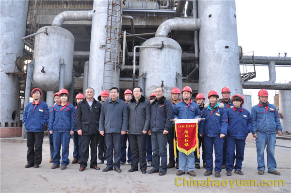 隨后,在李書記的陪同下,沈基明副書記深入到生產(chǎn)一線為被評為12月份“黨員文明崗位”的化工車間、建筑公司進(jìn)行授旗,并與黨員代表合影留念。